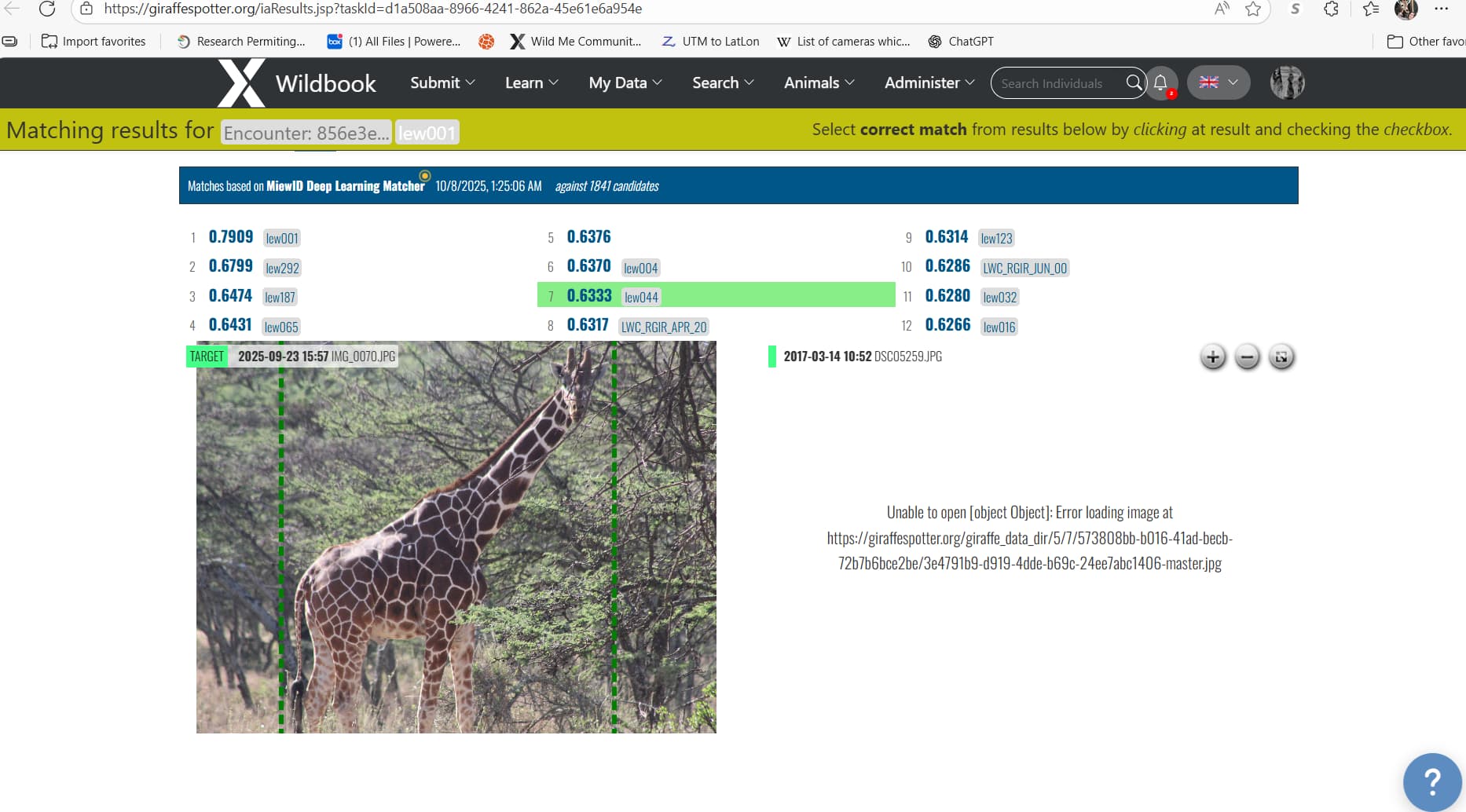 At the link below, click on numbers 3,4,& 7. I also included a screenshot below. Wildbook for Giraffe