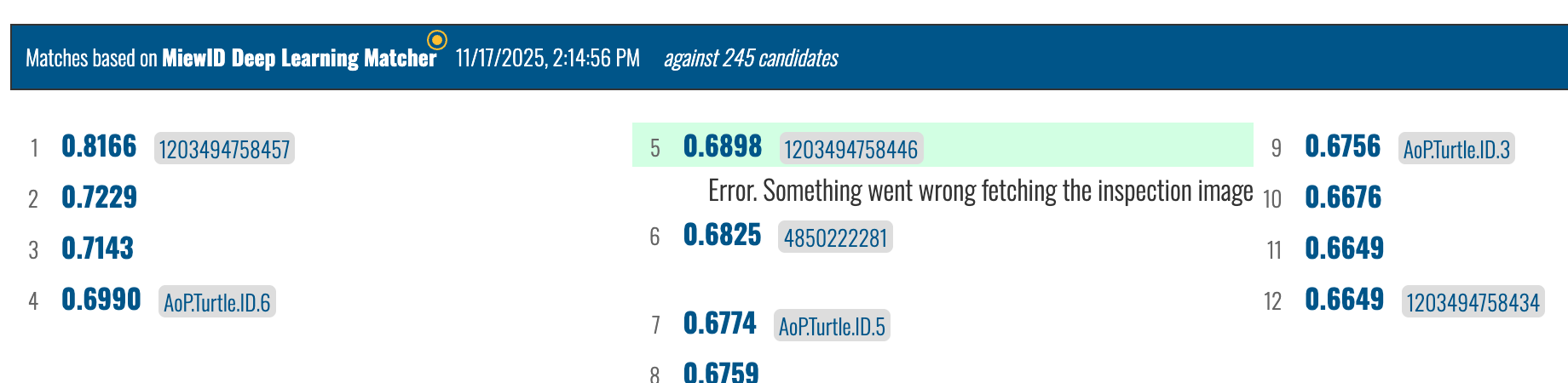 Thanks for your patience. It looks like there was en expired certificate on our side. I re-ran the match to before discovering the issue and see that it’s showing all inspection images now: Internet of Turtles