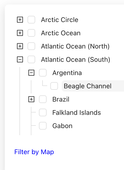 Is there a way to denote the hierarchy either with expandable lists by ocean or distinct bullets/number/letters?