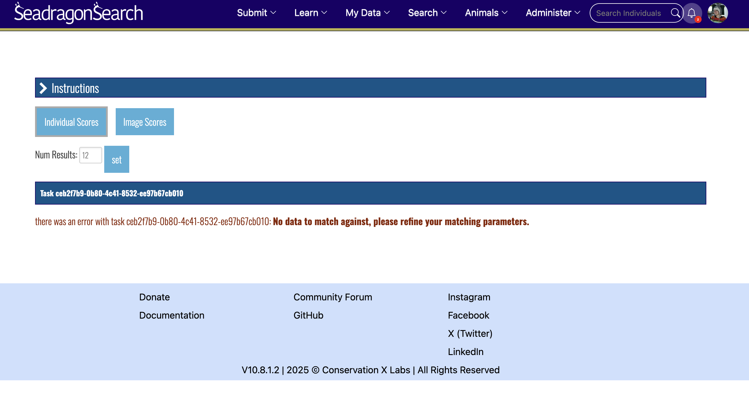 What happened? going to match results reveals an error and no matches