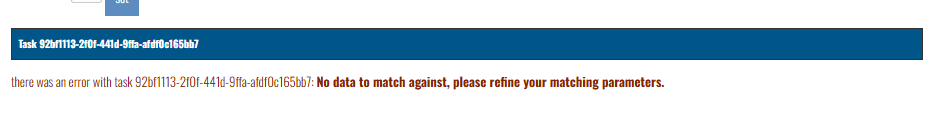 What happened? All matching jobs are sending error in return, even when resent individually. Old and new encounters alike. E.g.,
