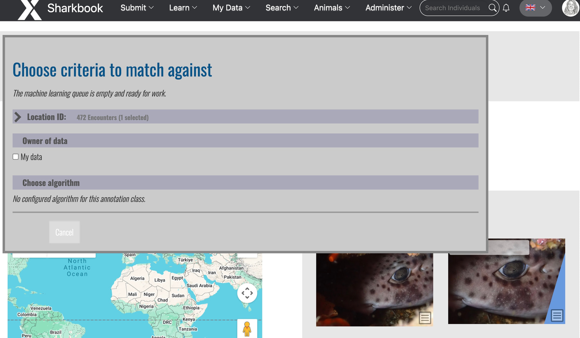 What happened? Hi, I after mapping the spots as I usual I hit to “return to the encounter” (I was told not to use the start scan button), and then “start match”. However, this “No configured algorithm for this annotation class” appeared, so I cannot match my sharks. Thanks for looking into this, Anastasia!