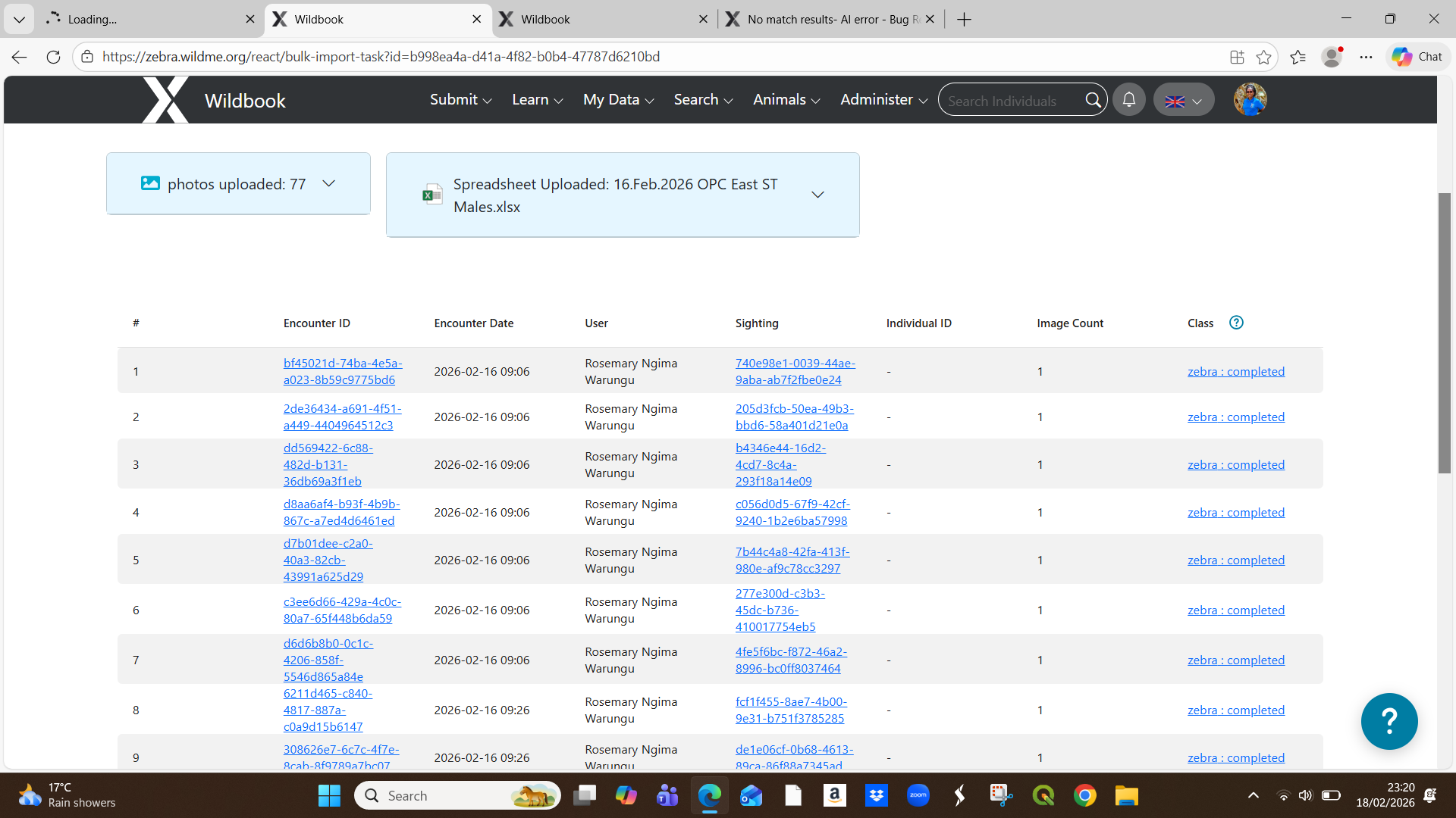 If this is a bulk import report, send the spreadsheet to services@wildme.org with the email subject line matching your bug report