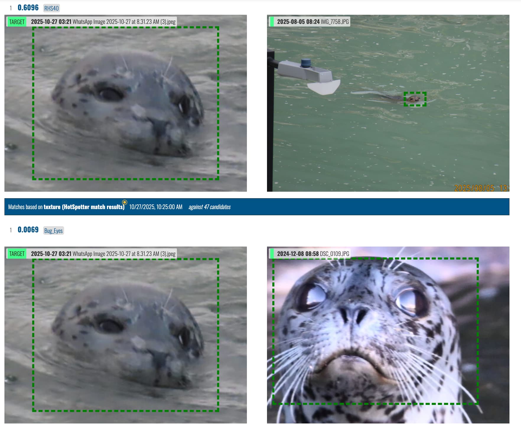 Additionally, there has been the case with a few individuals - where one individual who has only been encountered once(or 3 times max), and has 1-3 distinct photos shows up as a suggested and sometimes the only match incredible frequently (even when we are trying to run a routine match with one of our “key players” – BUG_EYEZ is a rare seal, but is recommended almost every match, sometimes the only recommendation