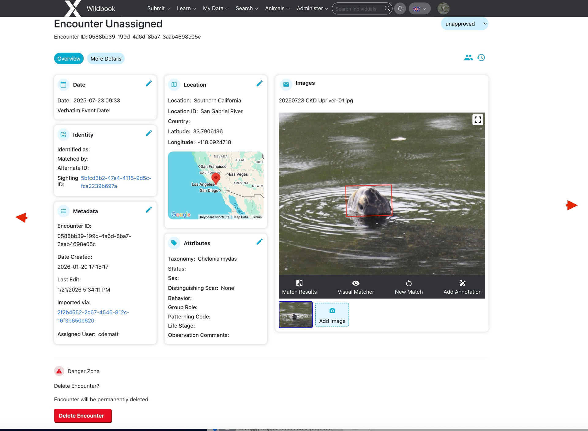 When submitting a bulk import, once the import is through detection, we validate/add annotations to ensure the encounters are annotated accurately. When doing so, we enter the encounter and then have to go back to the list of encounters in the bulk import list to get to the next one. This is very time consuming. It’s not always clear which encounter we were working on previously; sometimes the row is highlighted, but once the mouse is moved on the page the highlight disappears.